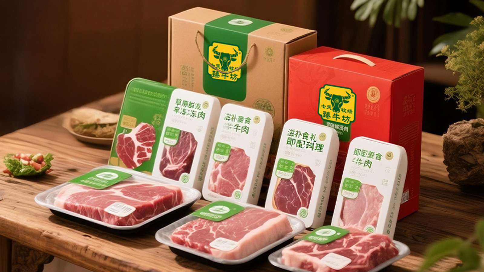“七天牧场臻牛坊”作为“七天牧场”家族新成员,依托内蒙古黄金奶源带的生态牧场资源,将天然牧养理念延伸至优质肉食领域,专注提供“草原鲜冻肉”“滋补熟食礼盒”“即烹调理肉品”三大核心品类。
